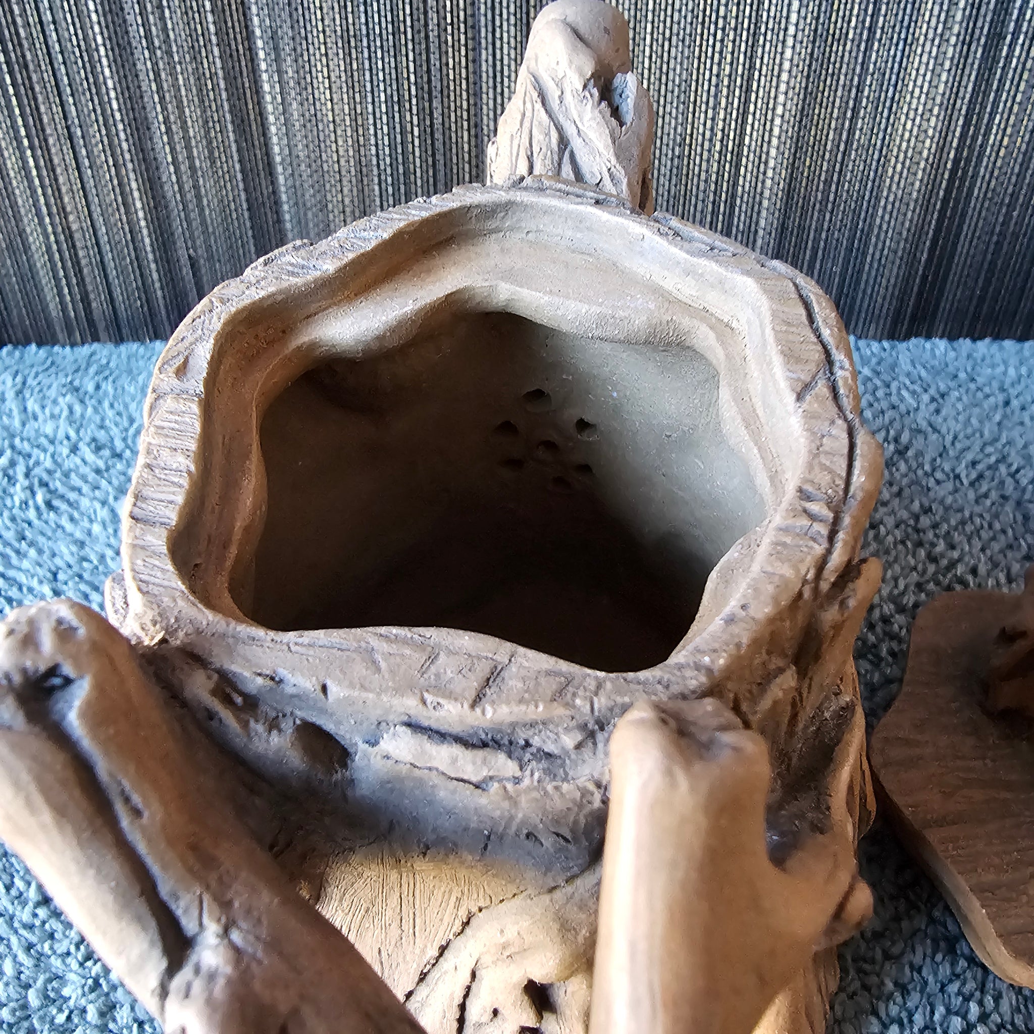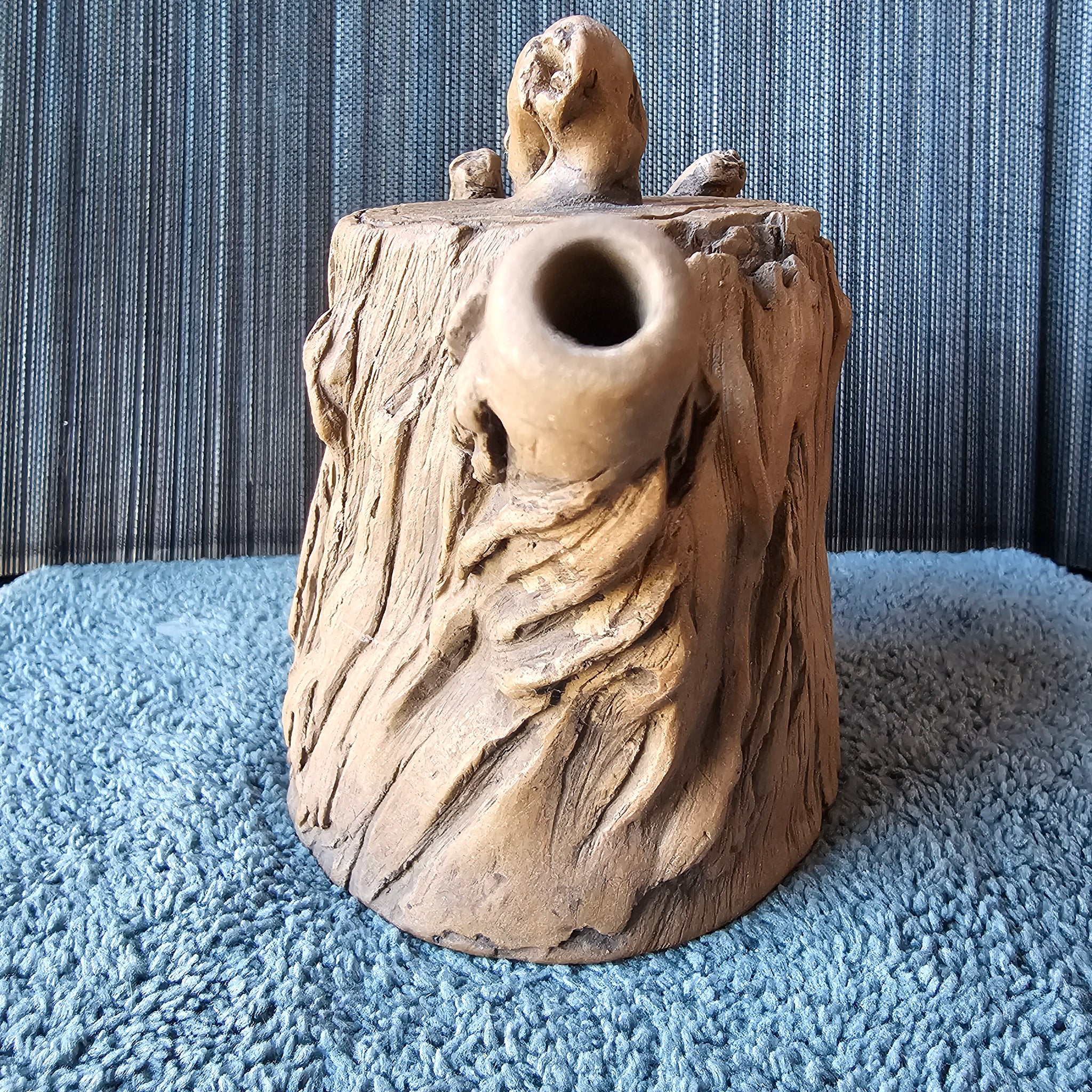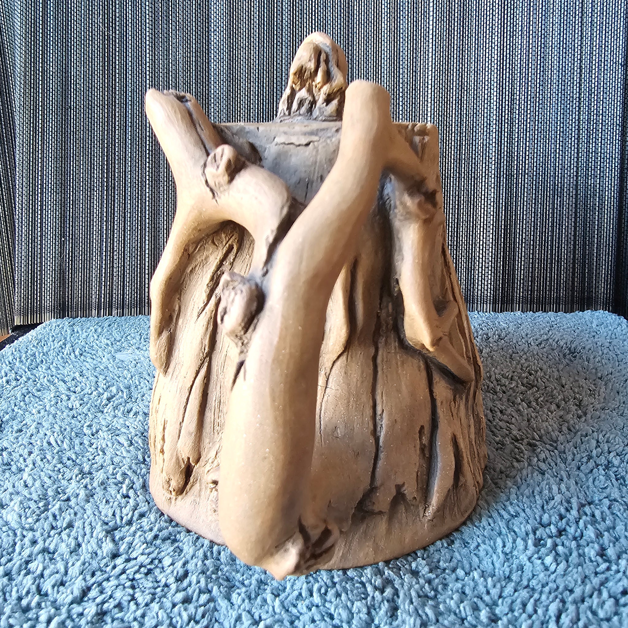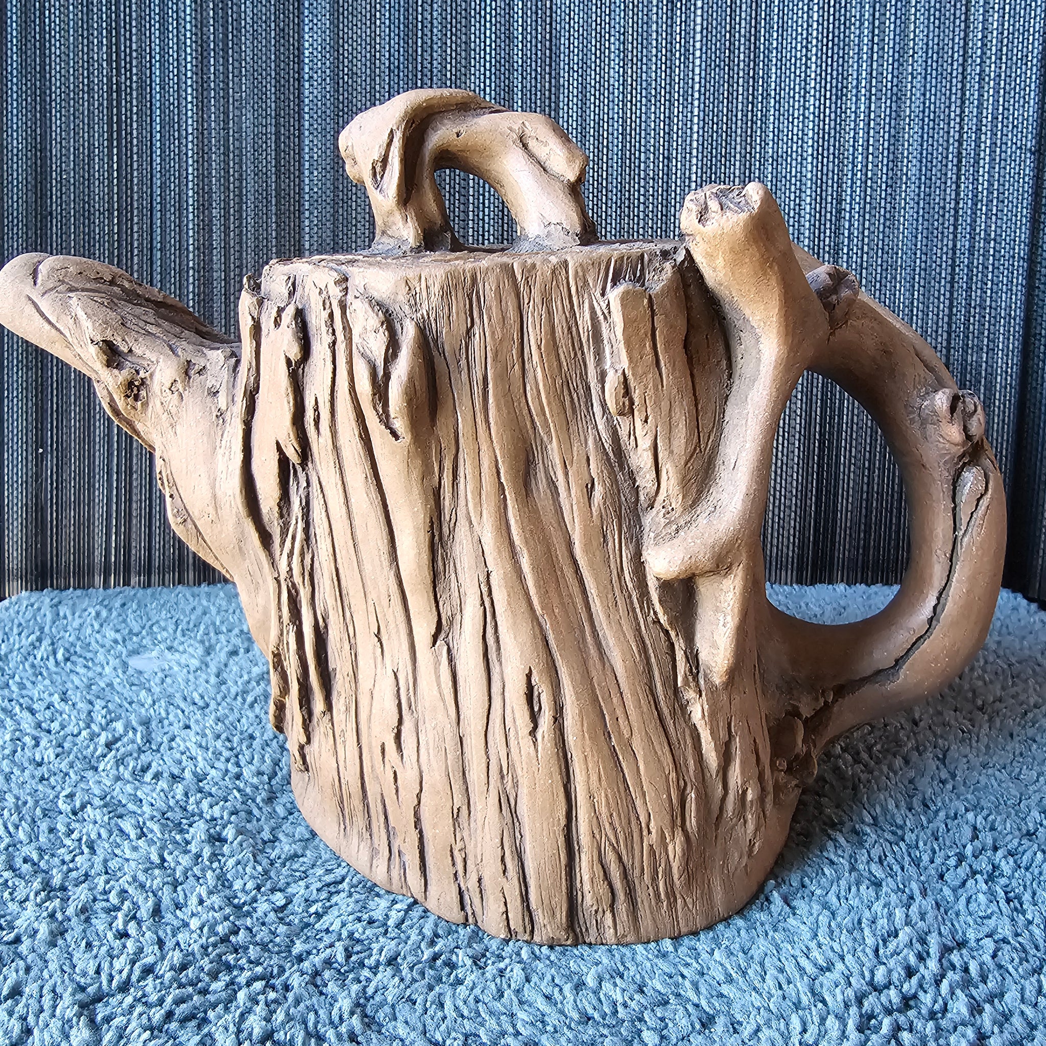 Fired in the natural color of the clay, this is a partial tree stump teapot with a TON of detail. This is a quality piece guys, the lid has an amazing fit!